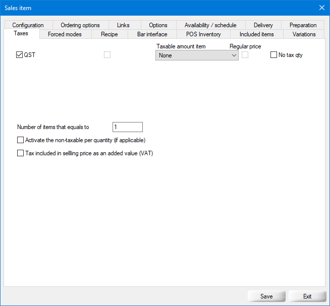 All the taxes configured in Point of sales control > Invoice > Taxes... will be displayed here. Select the tax(es) which apply to this item.